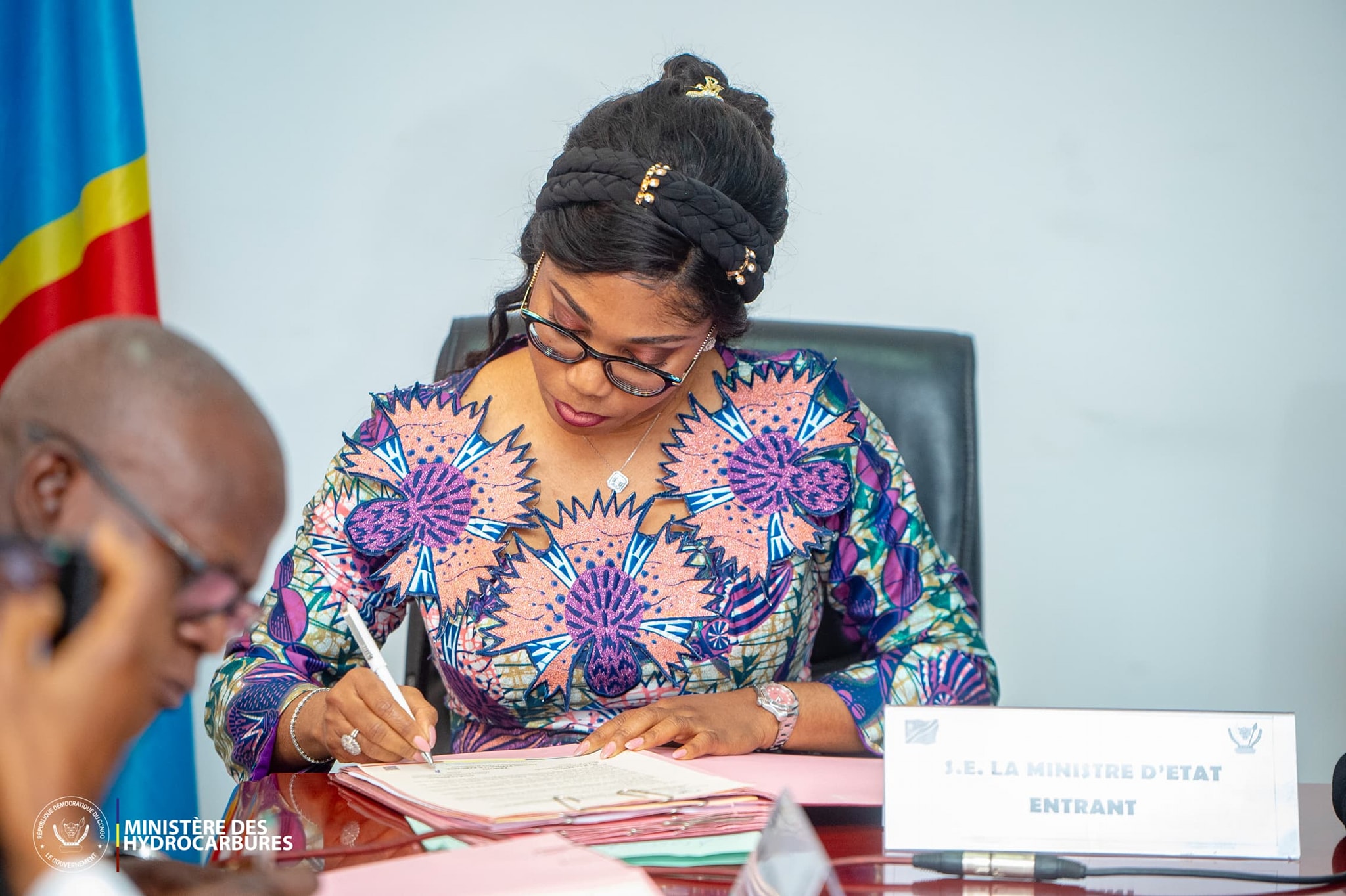 Lors de la cérémonie de remise et reprise, elle rend hommage au Président Félix Tshisekedi, qu’elle qualifie de champion de la masculinité positive, et à la Première ministre Judith Suminwa Tuluka, pour son leadership inspirant. Des mots choisis, portés par une sincérité rare dans le discours politique.